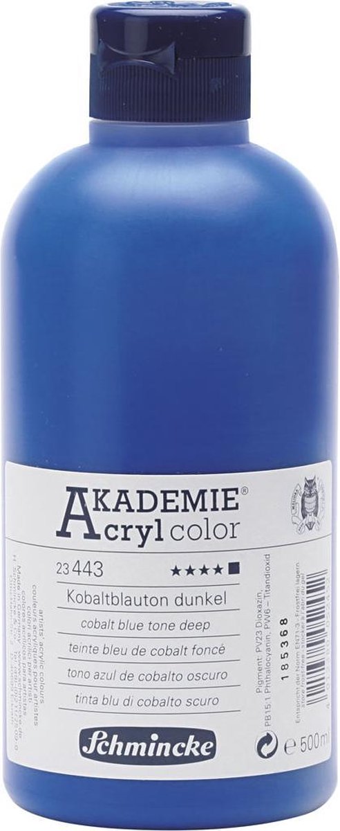Schmincke AKADEMIE® Acryl color, opaque, good fade resistant, 500 ml, cobalt blue hue deep (443)