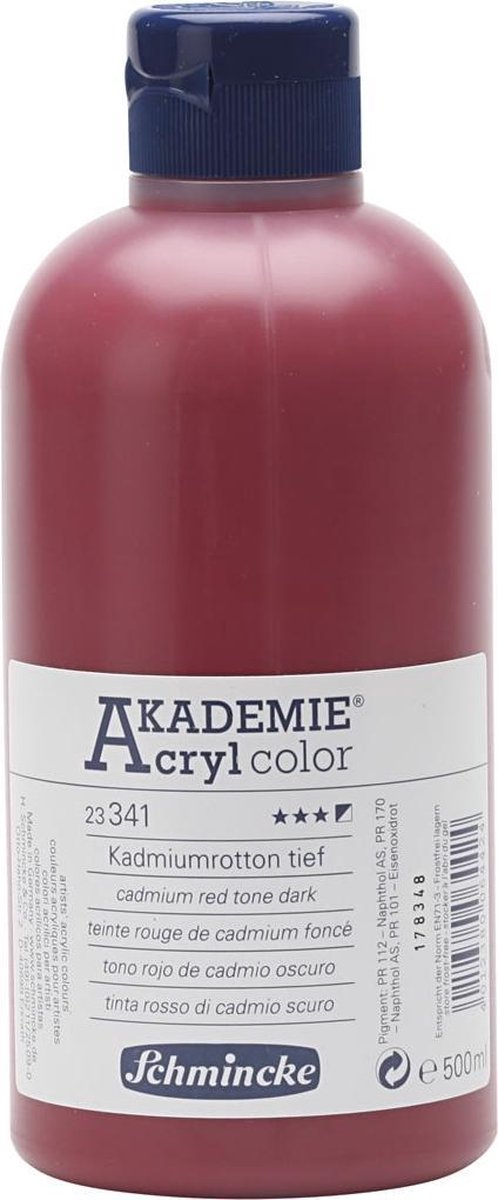 Schmincke AKADEMIE® Acryl color, semi-opaque, fade resistant, 500 ml, cadmium red hue dark (341)