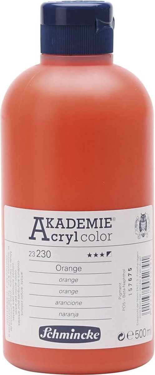 Schmincke AKADEMIE® Acryl color, semi-opaque, fade resistant, 500 ml, orange (230)
