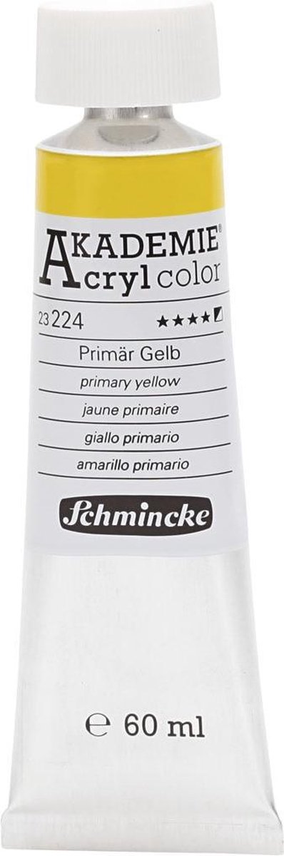 Schmincke AKADEMIE® Acryl color, semi-opaque, good fade resistant, 60 ml, primary yellow (224)