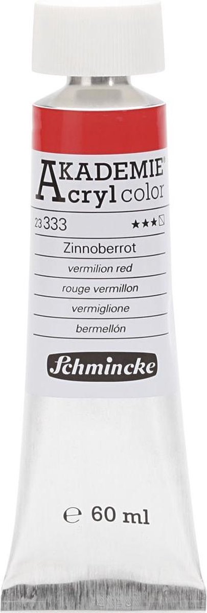 Schmincke AKADEMIE® Acryl color, semi-transparent, fade resistant, 60 ml, vermilion red (333)