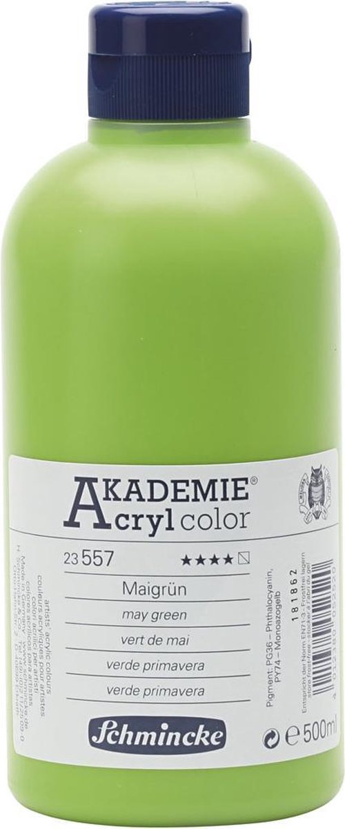 Schmincke AKADEMIE® Acryl color, semi-transparent, good fade resistant, 500 ml, may green (557)
