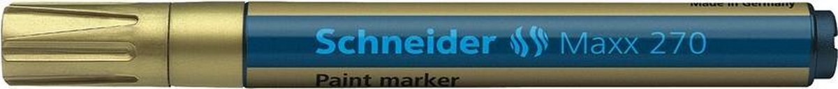 Lakmarker, dekt lakachtig op vrijwel alle oppervlakken. De marker is lichtecht en bestand tegen bijtende middelen. Punt is verwisselbaar. Met ronde punt ca. 1 - 3 mm. Kleur goud.