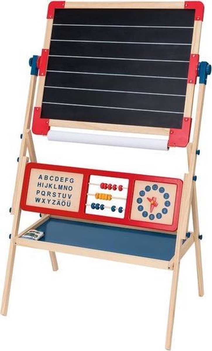 Dit leerbord van FSC-gecertificeerd hout is dubbelzijdig te gebruiken, met aan de ene kant een magneetbord en de andere kant een krijtbord Het leerbord is voorzien van een klok, telraam, cijfers, letters en krijt om te leren schrijven, tellen, rekenen en klokken Frame en poten zijn gemaakt van onbehandeld grenenhout Inclusief 5 krijtjes, 1 veger, 29 letters, 10 getallen, 14 rekenkundige symbolen Beperkt Leverbaar!!!