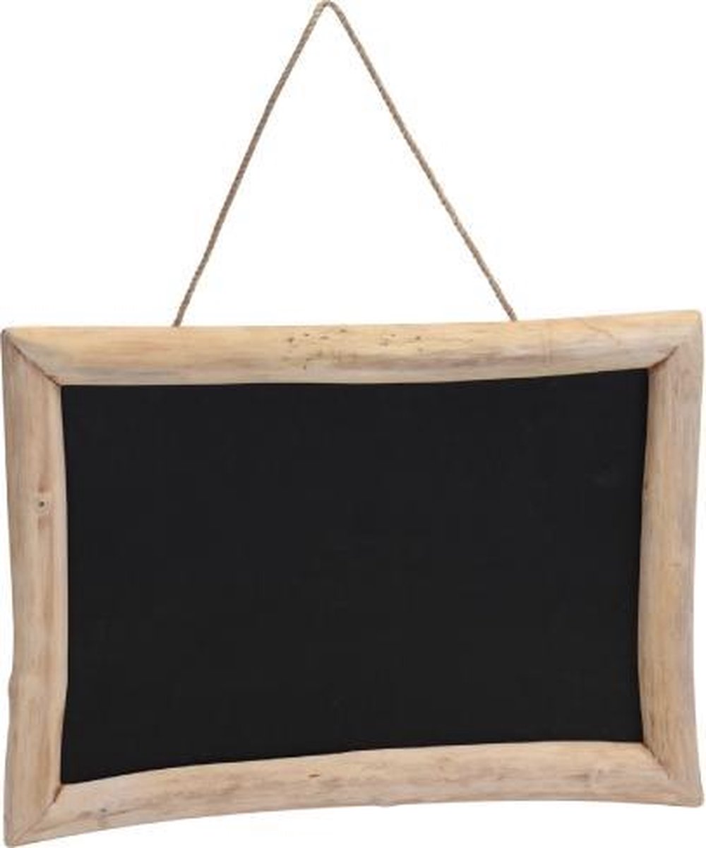 Hangend schoolbord van teakhout. Afmetingen: 70 x 50 x 3 cm.