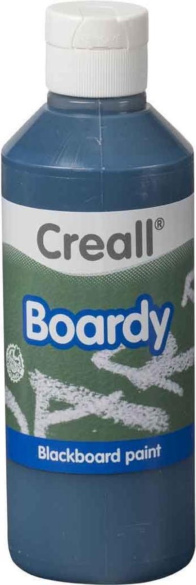 Schoolbordverf op acrylbasis. Zeer goede dekkracht voor gebruik op karton, hout,metaal, muren etc.2 of meer lagen kruislings aanbrengen. Droogt watervast op. Na 24u droging beschrijfbaar met schoolbordkrijt. Uitwisbaar of afneembaar met water. Verbruik: 100 ml per m2 per laag. Kleur: Blauw Inhoud: 250ml