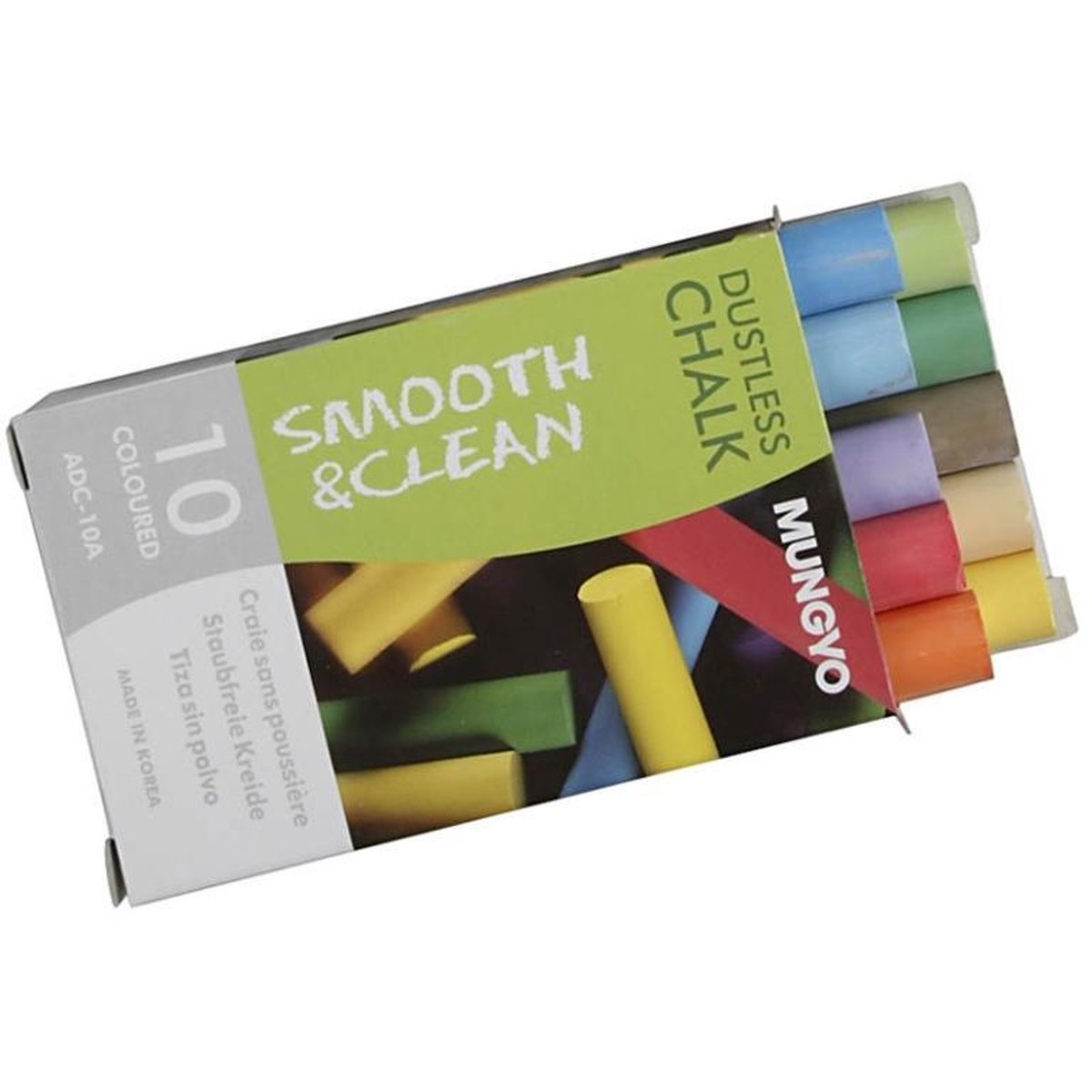 Goede kwaliteit schoolbordkrijt, l: 10 cm. Pak met 10 gekleurde krijtjes