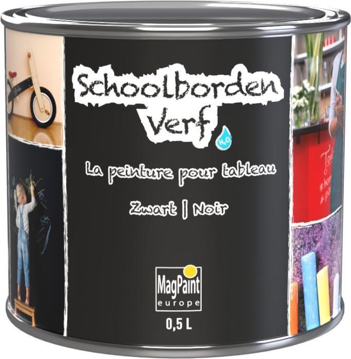 Schoolbordverf 1 liter zwart op waterbasis. Voor alle creatievelingen is onze SchoolbordVerf een uitkomst. Met deze verf geef je objecten, wanden en deuren snel een verrassende en nieuwe functie. 1000ml= 10m2. Let op: Krijtmarkers en Windowmarkers kunnen niet gebruikt worden op onze schoolbordenverf! Waarom Schoolbordenverf van MagPaint: ? Een verf op waterbasis, die snel droogt en eenvoudig aan te brengen is. ? Praktisch reukvrij. ? Het krijt is gemakkelijk te verwijderen met een zachte doek of bordenwisser. ? Toe te passen op uiteenlopende materialen en oppervlakten. ? Verkrijgbaar in maar liefst zeven kleuren: lime, roze, grijs, zwart, donkergroen, blauw en rood. ? Wij hebben ook een transparante basis verf voor verfmixmachines: SchoolbordVerf Elke Kleur. Nu is bijna iedere kleur denkbaar! ? Moeiteloos te combineren met magneetverf van MagPaint.