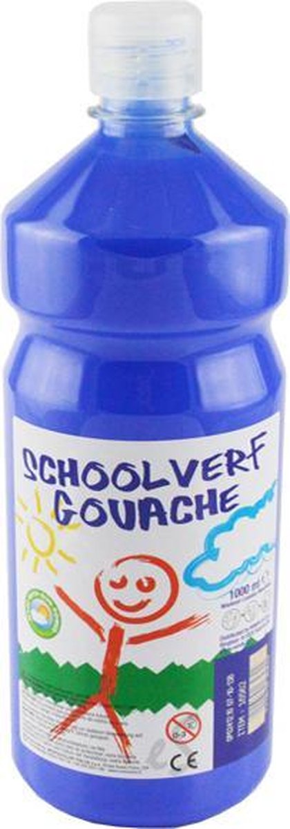 Schoolverf 1000 ml. * *Blauw Ultramarine* * Klaar voor direct te gebruiken. Knijpfles van 1 liter. Vele toepassingen en eenvoudig aan te brengen. Ideaal voor onze jonge kunstenaars en/of verenigingen. Uitwasbaar.
