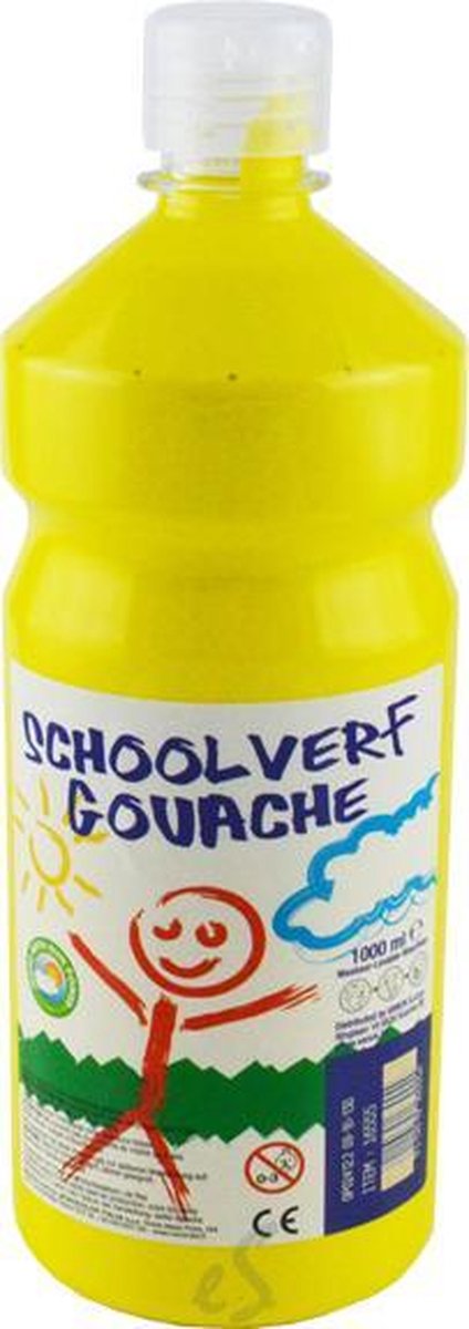 Schoolverf 1000 ml. * *Geel* * Klaar voor direct te gebruiken. Knijpfles van 1 liter. Vele toepassingen en eenvoudig aan te brengen. Ideaal voor onze jonge kunstenaars en/of verenigingen. Uitwasbaar.