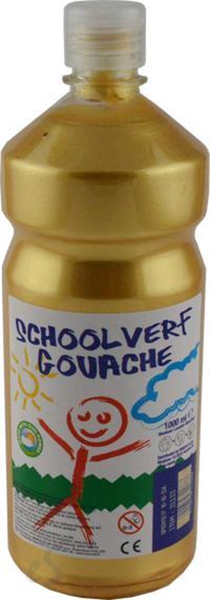 Schoolverf 1000 ml. * *Goud* * Klaar voor direct te gebruiken. Knijpfles van 1 liter. Vele toepassingen en eenvoudig aan te brengen. Ideaal voor onze jonge kunstenaars en/of verenigingen. Uitwasbaar.