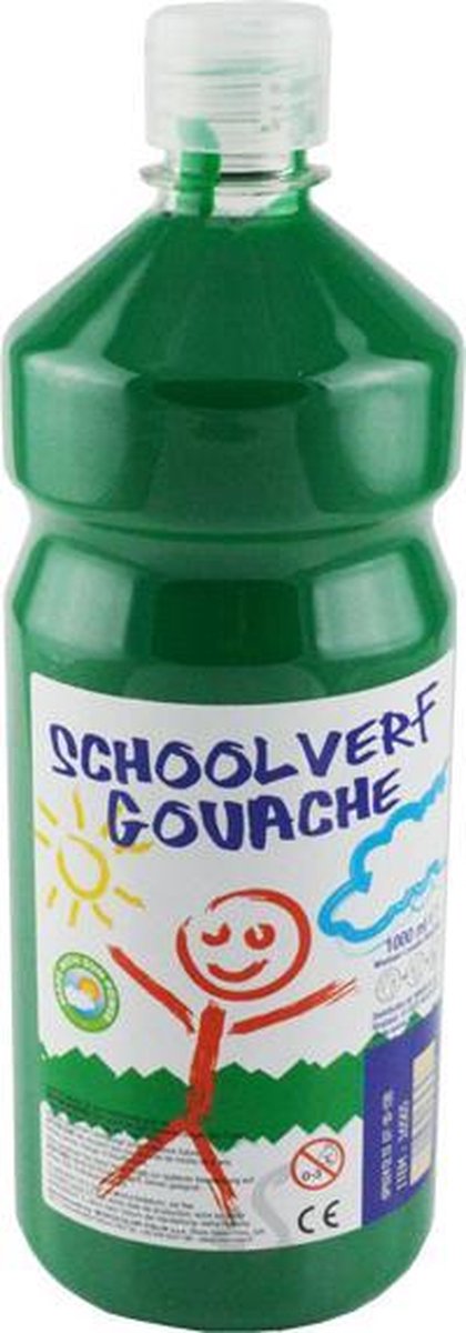 Schoolverf 1000 ml. * *Groen* * Klaar voor direct te gebruiken. Knijpfles van 1 liter. Vele toepassingen en eenvoudig aan te brengen. Ideaal voor onze jonge kunstenaars en/of verenigingen. Uitwasbaar.