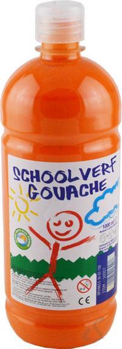 Schoolverf 1000 ml. * *Oranje* * Klaar voor direct te gebruiken. Knijpfles van 1 liter. Vele toepassingen en eenvoudig aan te brengen. Ideaal voor onze jonge kunstenaars en/of verenigingen. Uitwasbaar.