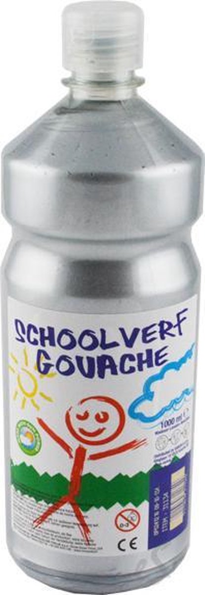 Schoolverf 1000 ml. * *Zilver* * Klaar voor direct te gebruiken. Knijpfles van 1 liter. Vele toepassingen en eenvoudig aan te brengen. Ideaal voor onze jonge kunstenaars en/of verenigingen. Uitwasbaar.