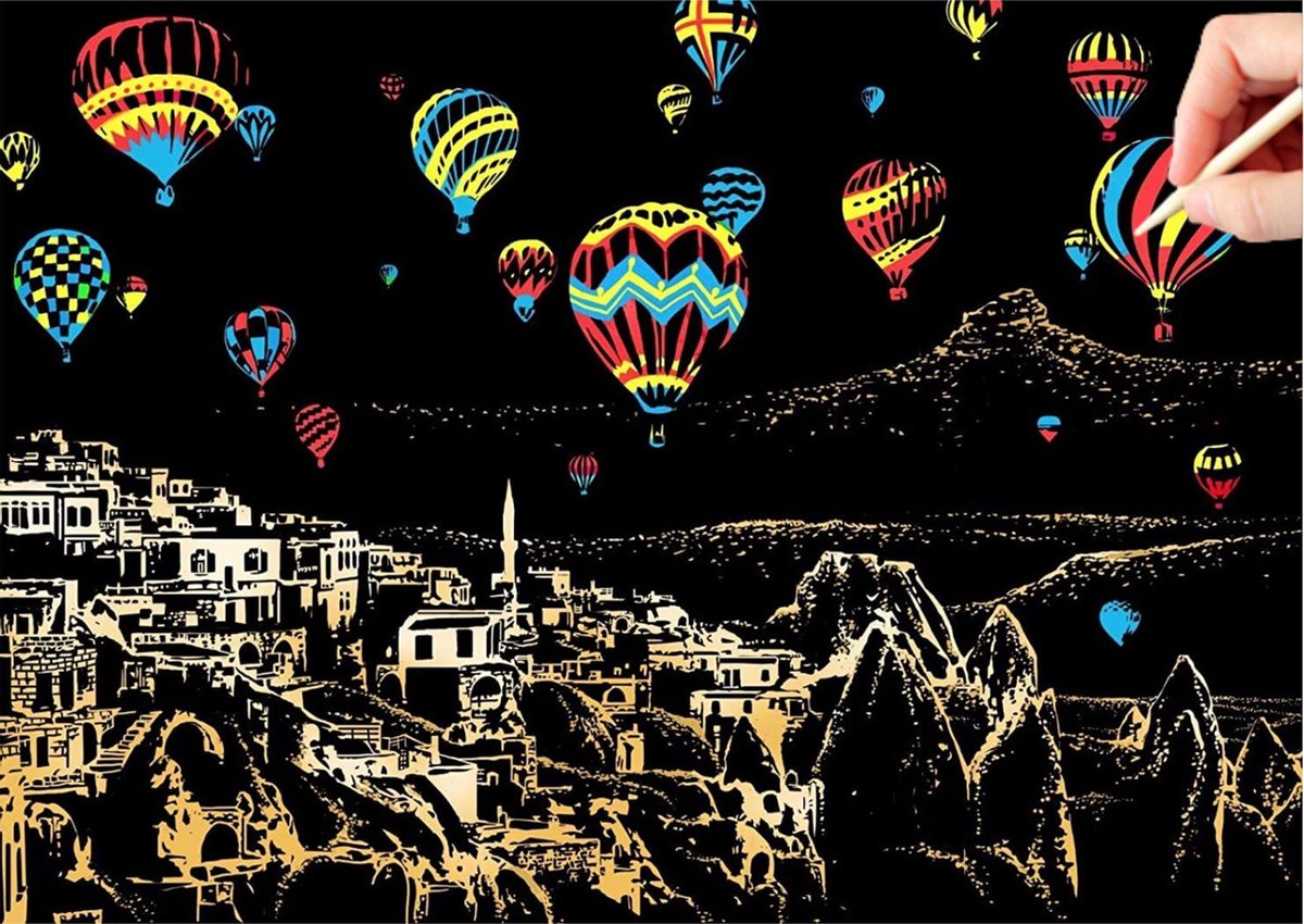 Altijd al wat moois willen maken? Met deze Scratch Art Painting set creëer jij een oogverblindend kunstwerk! Scratch Art is de nieuwste trend in de hobby- DIY wereld. Je kunt heel eenvoudig je persoonlijke kunstwerk maken. Het is ook leuk voor het hele gezin! Het is dit dé trend van dit moment! Perfect voor creatieve artiesten die hun technische vaardigheden willen verbeteren. Wat is Scratch Art? Scratch Art (Kras Tekening) is een nieuwe manier van schilderen. Het bijzondere is dat er geen normale pennen worden gebruikt voor het schilderen, maar een hoogwaardig doek en een speciaal ontwikkelde kras pen. Het principe is eenvoudig: alle grijze zones zijn krasvrij en zie hoe de afbeelding tot leven komt. Scratch Art is eigenlijk een grote kraskaart, kras de grijze laag weg en maak de mooiste schilderijen. Het motto hier is "krabben in plaats van schilderen. Er wordt een gratis zwart black board bijgeleverd om je eigen creatie te maken. Inhoud Scratch Art Pakket ? Scratch art painting
