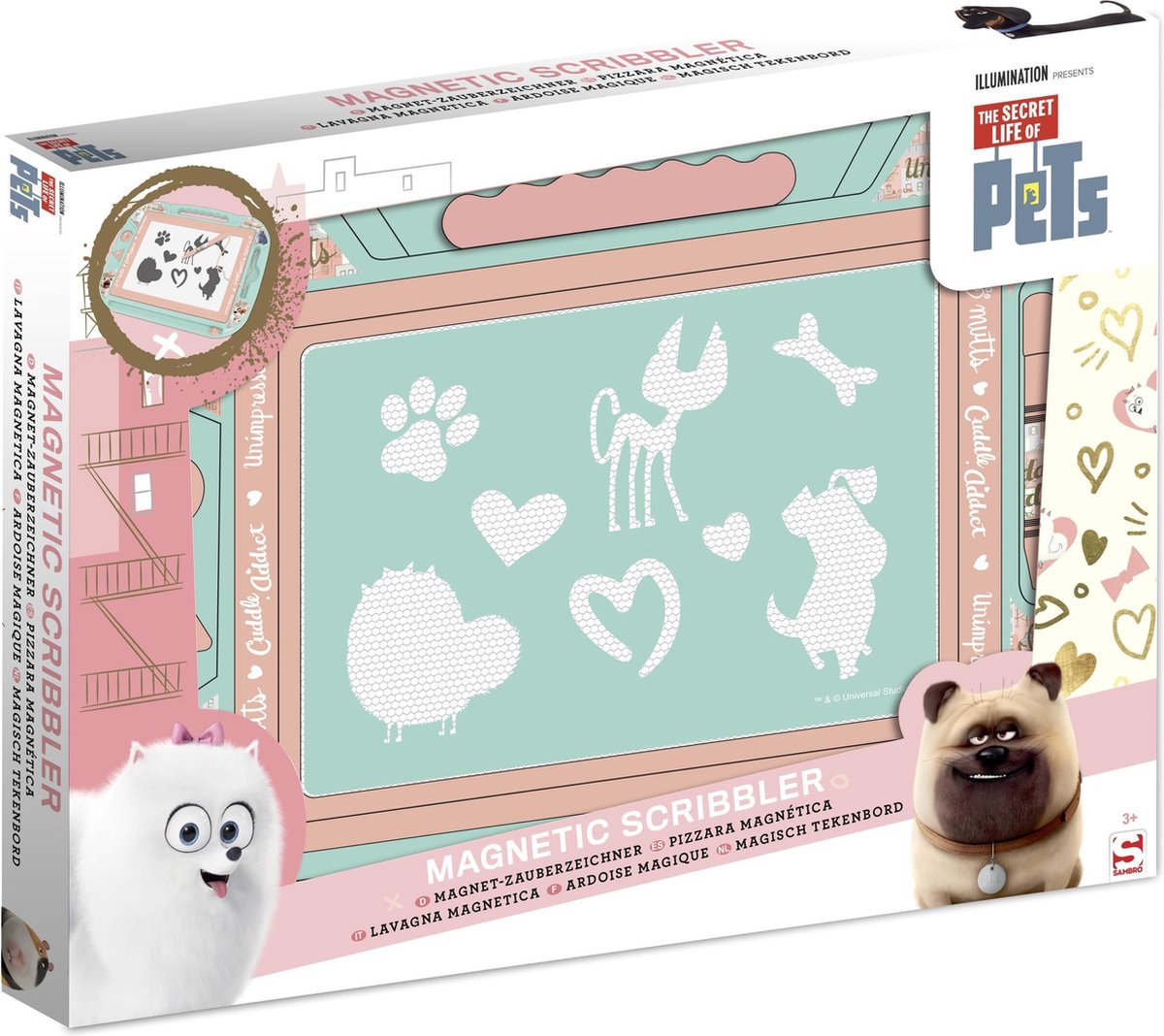 Maak op dit magische tekenbord mooie tekeningen van de huisdieren van The Secret Life of Pets. Inclusief magnetische pen en stempels.