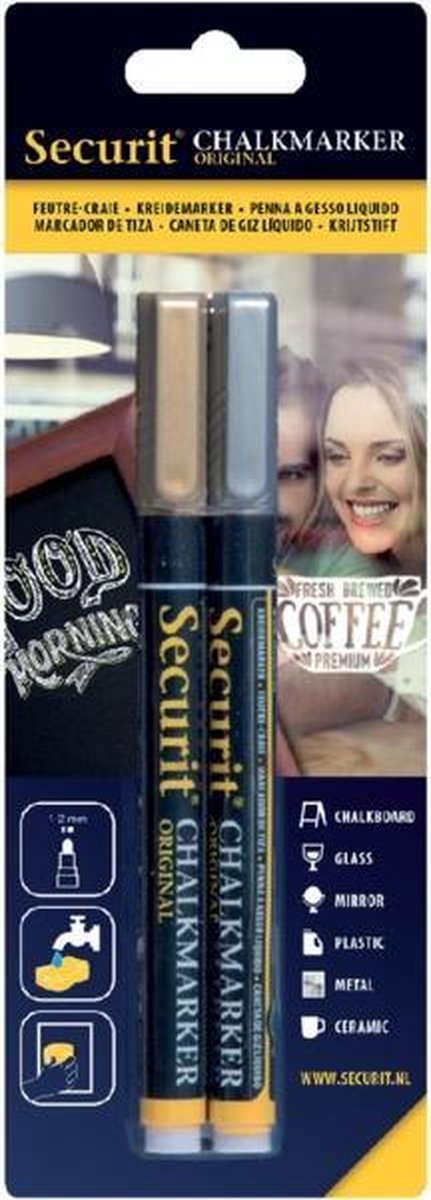 Blister krijtstift SMA-100. 1-2mm schrijfbreedte. 1x goud en 1x zilver. 1 blister à 2 stuks
