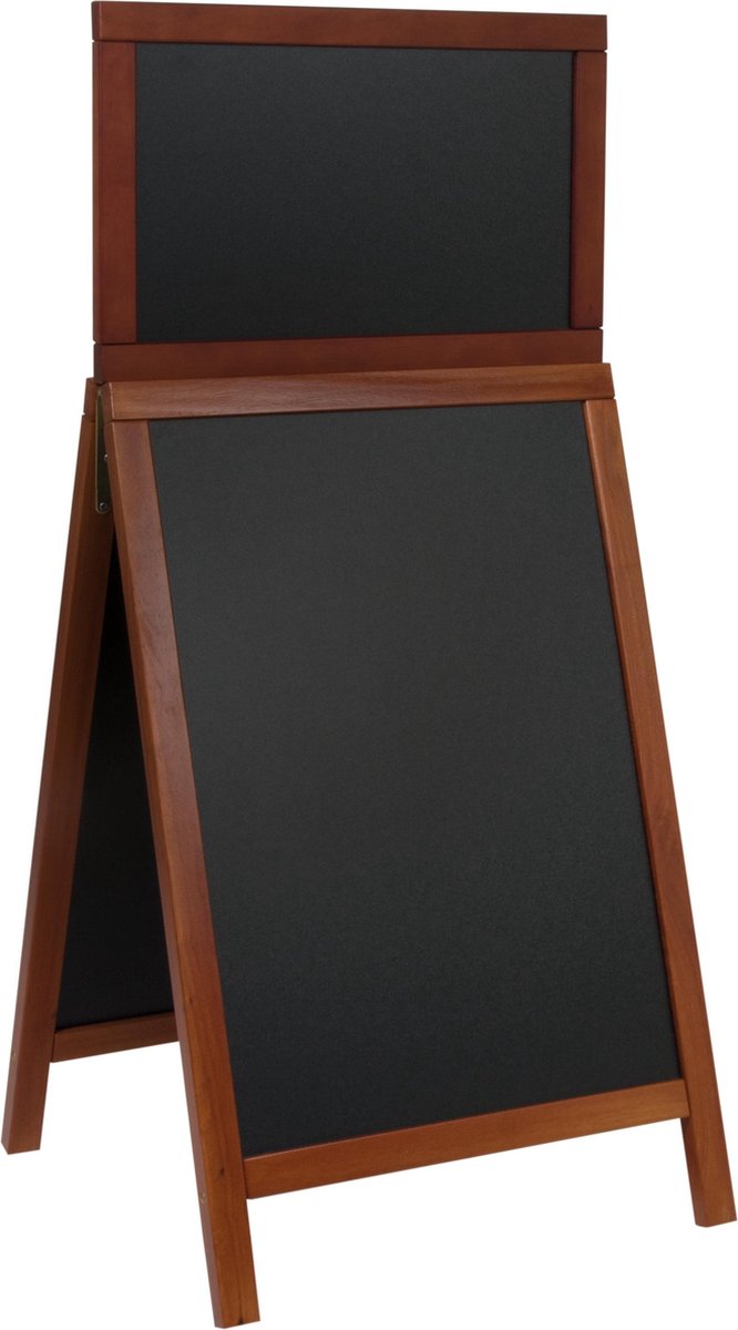Het stoepbord van Securit is voorzien van een houten lijst met coatinglaag. Het stoepbord heeft een strak design en is weerbestendig. Daarnaast heeft dit bord een schrijfoppervlak van 125x70 cm en is dit bord makkelijk schoon te houden. Pavement Chalkboard “DELUXE” – Lacquered rubberwood frame, all weather resistant. Scratch resistant, easy to clean, non-porous writing surface. Completed with stainless steel components.