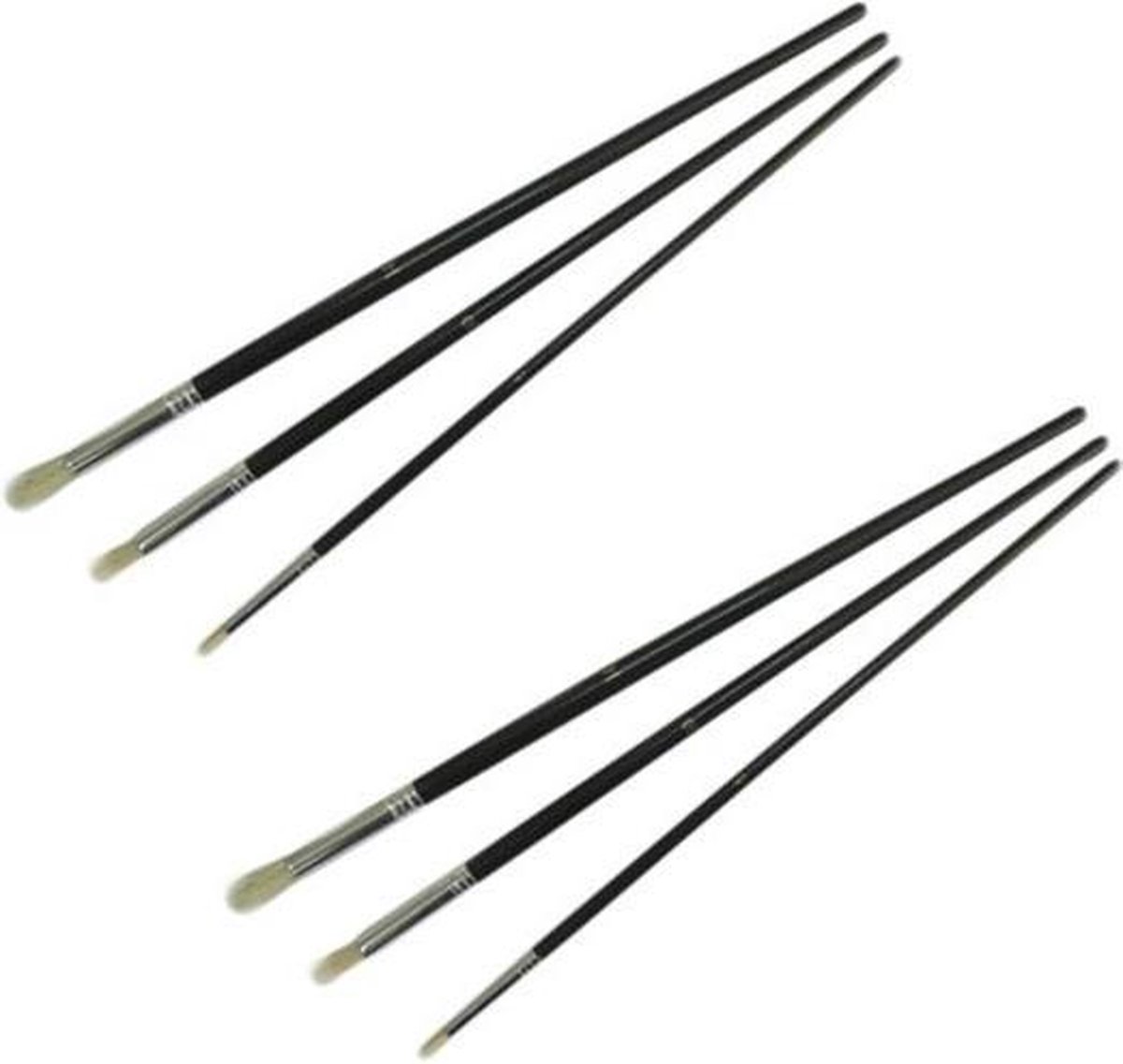 5 keer, 3-delig penselen set. Deze borstel met haren met mengeling synthetische en natuurlijke vezels is geschikt voor een toepassing voor verven op waterbasis. Vorm: Rond Kwast maat: 14, 10 , 6