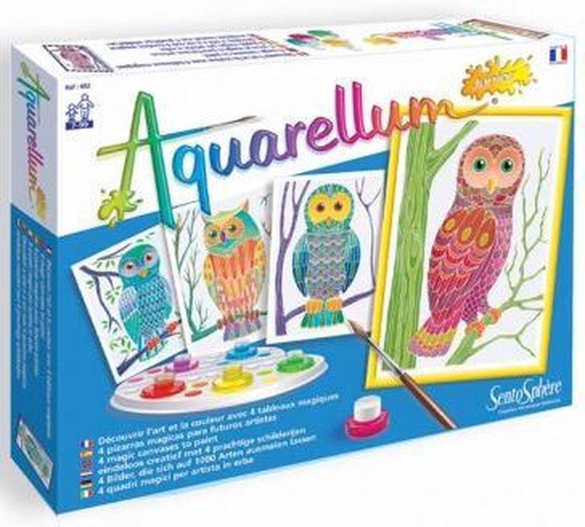 Inhoud: 4 embossed canvassen van 18 x 25 cm 5 x 5 ml vloeibare waterverf 1 palet, 1 pipetje, 1 kwast & instructies