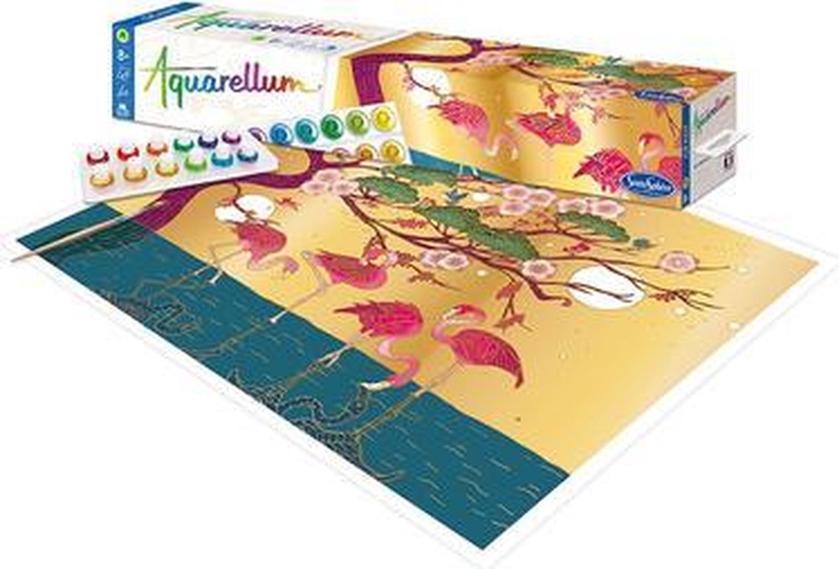 Gegarandeerd binnen de 'lijntjes' schilderen met een magisch resultaat! Het is mogelijk door deze fantastische Aquarellumset. Doordat de randen van de tekening dikgedrukt zijn, kunnen de kleuren niet overlopen. De kleuren zijn met elkaar te mengen. Inhoud: 1 groot embossed canvas 12x 5 ml vloeibare waterverf 1 palet, 1 pipetje, 1 kwast & instructies