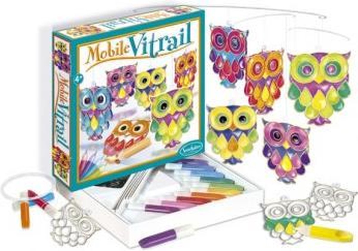 Inhoud: 8 uit gestanste vlinders 4 stalen mobielhangers 10 x tubes glasverf transparante nylon draad uitgebreide instructie