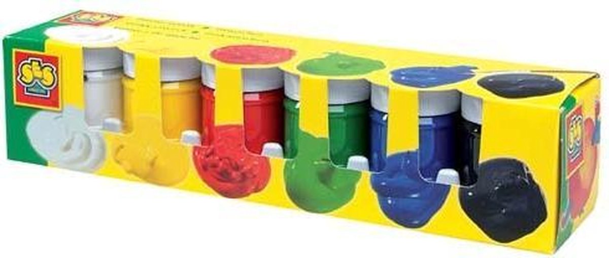 SES plakkaatverf 6 potjes van 50 ml In de kleuren wit, geel, rood, groen, blauw en zwart Ideaal voor de beginnende kunstenaar!