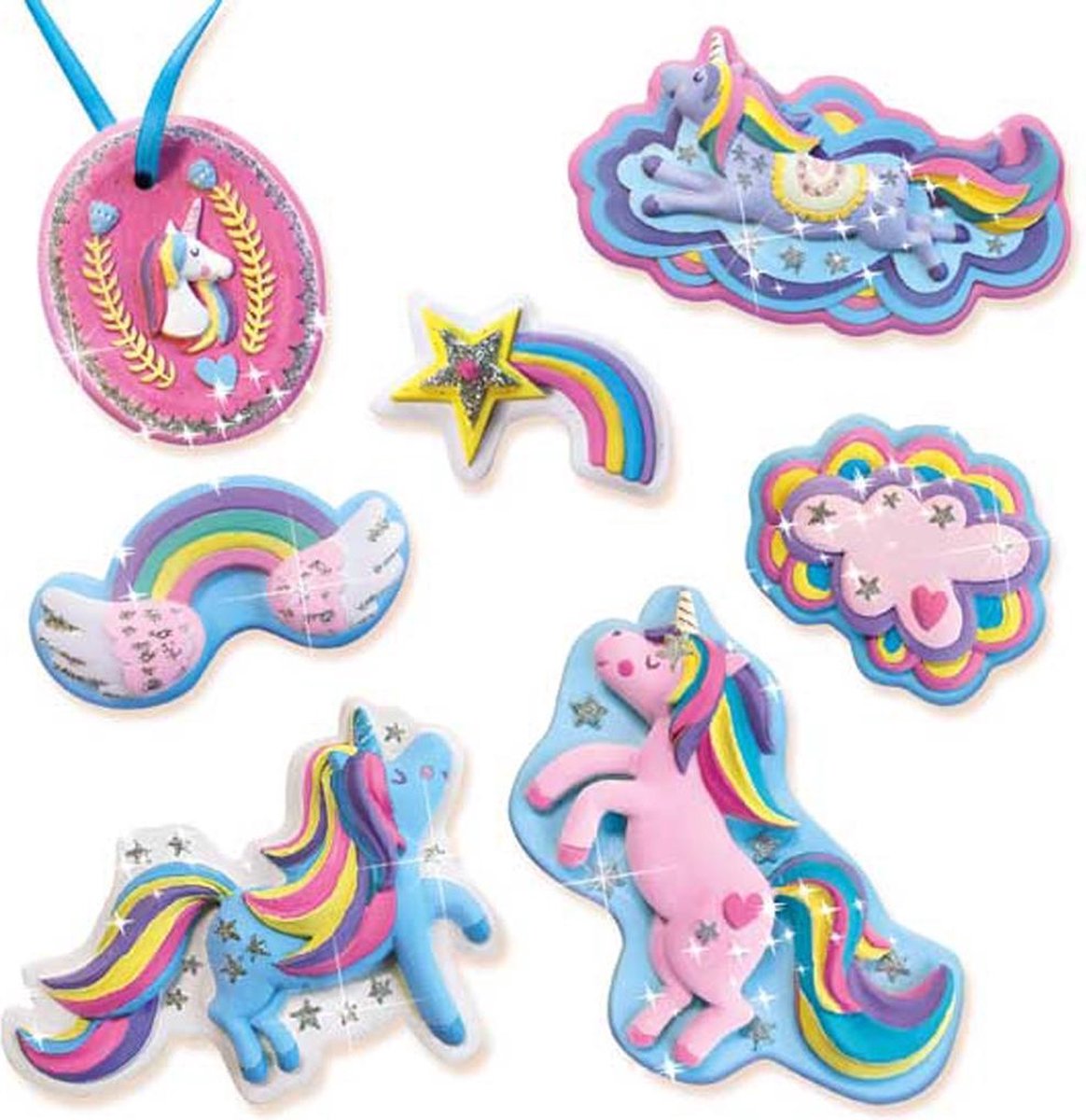 Houd jij ook zo van eenhoorns? Met deze set vanSES Creative gips gieten en schilderen maak je eenvoudig allerlei leuke eenhoornbeeldjes van gips. Giet het gips in de mal en laat het uitharden. Pak dan de bijgeleverde verf erbij en schilder de eenhoorns in je favoriete kleuren. Leuk om te doen en een super resultaat! Gips Mal Zeskleuren trendy verf Penseel Gladstrijkkam Buisje zilver glitter Blauw satijnband