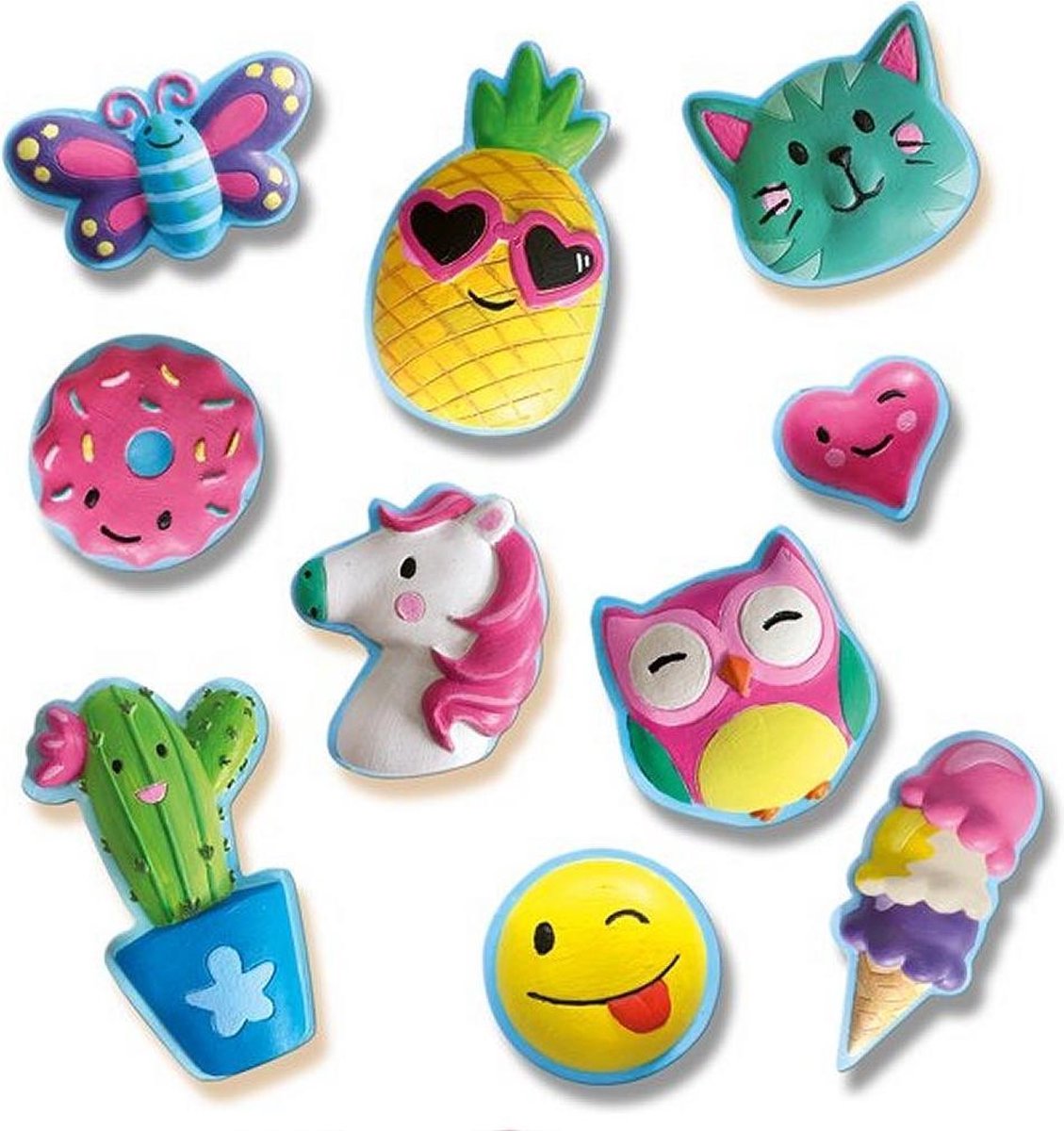 SES Creative gips gieten vrolijke figuren Vind je gips gieten ook zo leuk? Met deze set maak je allerlei vrolijke figuren, zoals een eenhoorn, smiley, uiltje en een vlinder. Giet het gips in de mal en laat het uitharden. Beschilder ze daarna in mooie trendy kleuren. Leuk om te doen en super resultaat! Sneldrogend gips Mal met 10 figuren 6 kleuren trendy verf Penseel Gladstrijkkam Bevorderen creativiteit Instructies zijn te vinden achter op de verpakking De verf en het gips zijn goed uitwasbaar uit textiel en afwasbaar van de huid