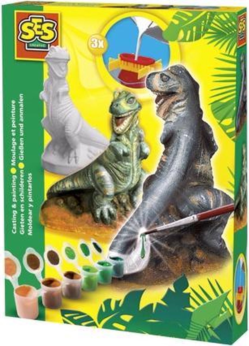 Maak de mooiste beeldwerkjes van gips met SES Creative Wil jij een enge T-Rex in je kamer Met deze set kun je 3 gipsen figuren maken en ze in de kleuren beschilderen die jij wilt Maar welke kleur had hij in het echt We zullen het nooit weten Leeftijd 5+
