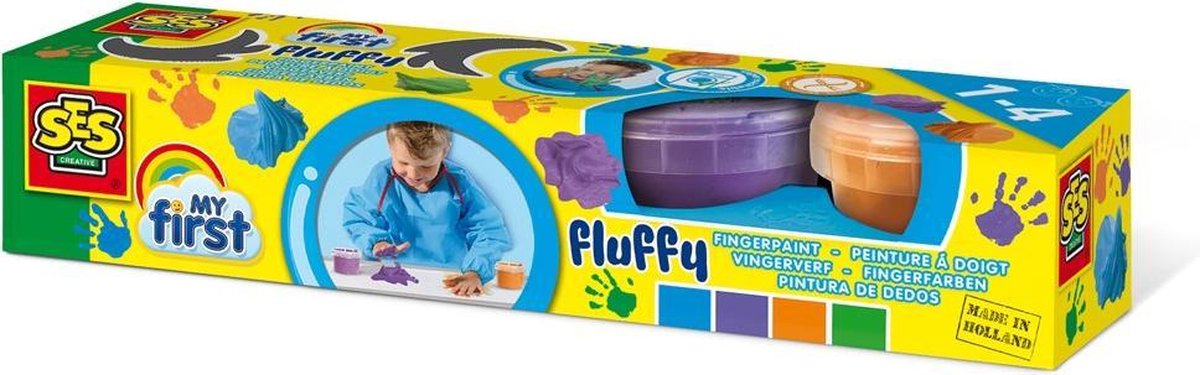 SES Creative My First Fluffy vingerverf Dit is geen gewone vingerverf, dit is fluffy vingerverf! Deze luchtige verf voelt aan als een soort mousse, waardoor je er lekker dik mee kunt kliederen. Door de dikke textuur stroomt de verf ook niet uit het potje als je het per ongeluk omgooit, fijn voor papa en mama!