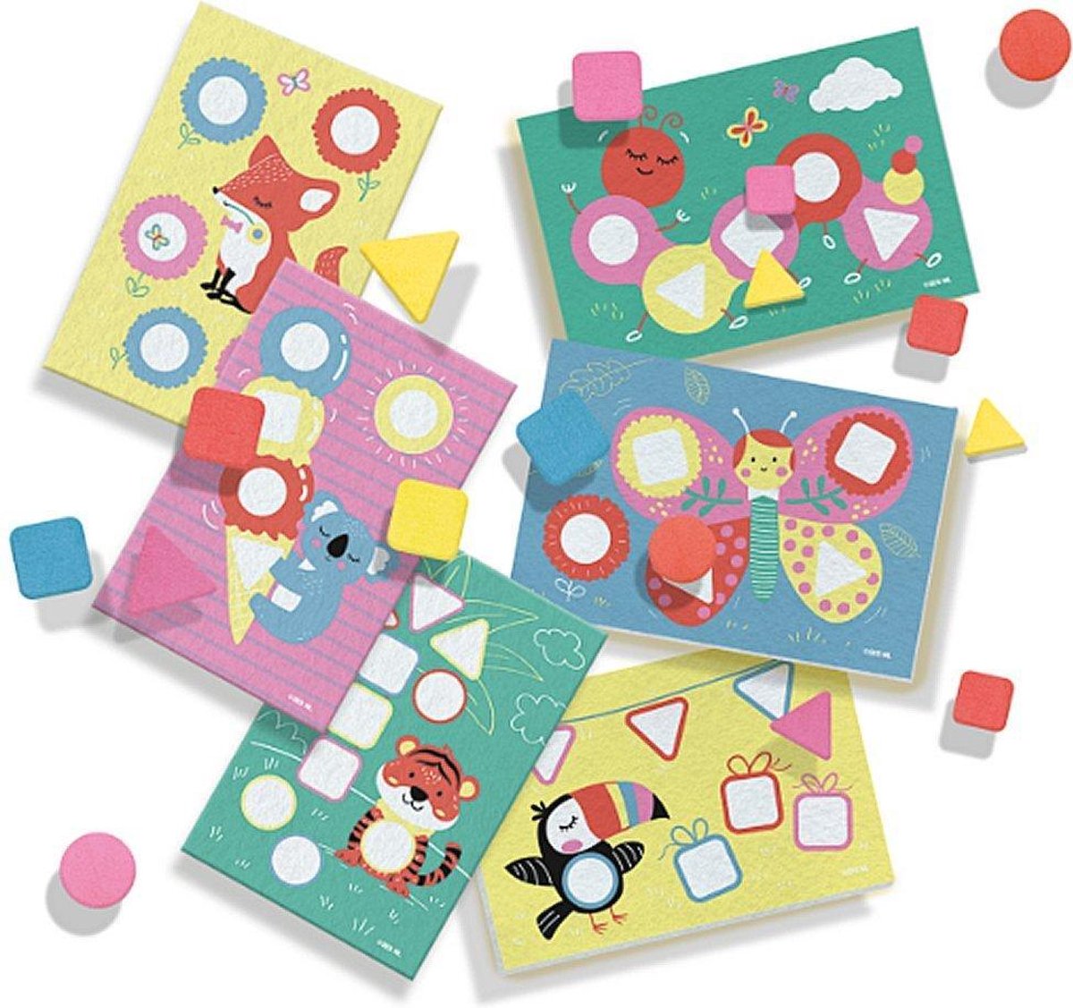 SES Creative My First vilt mozaïeken Eindeloos mozaïekplezier! De drie vilten speelmatten van hoge kwaliteit hebben schitterende ontwerpen aan beide zijden. Probeer de vormen en of de kleuren te matchen met de figuren! Verwijder ze, probeer een andere speelmat of begin opnieuw. Deze activiteit stimuleert fijne oog-hand coördinatie en vormherkenning. 3 vilten speelmatten (met 6 ontwerpen) 16 mozaïekvormen in 4 kleuren Geschikt voor kinderen van 1 tot 4 jaar