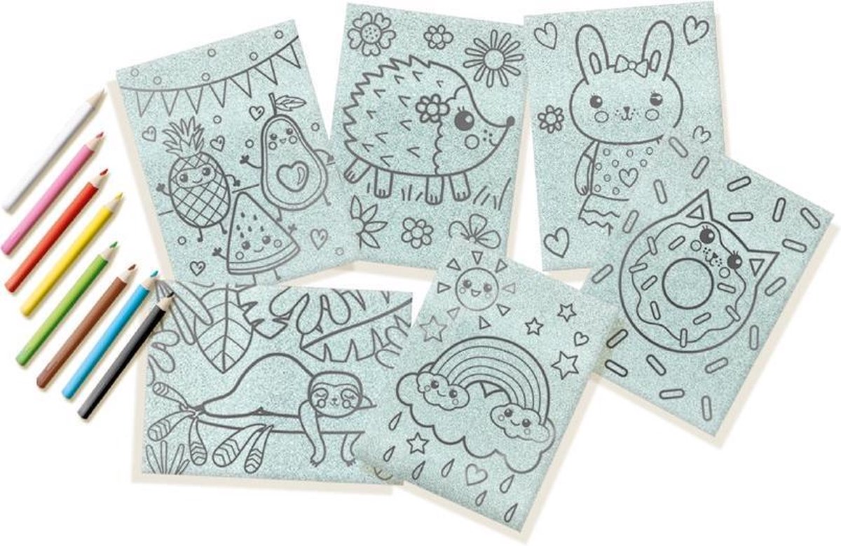 SES Creative sticker glitterkaarten inkleuren 8 kleurpotloden 6 kaarten Geschikt voor kinderen van 3 tot 6 jaar