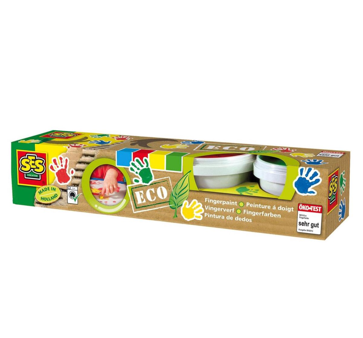 Laat de kleinste kunstenaar maar lekker kliederen. Inhoud: vier heldere kleuren bestaand uit 90% natuurlijke grondstoffen. Houders bestaan voor 50% uit gerecycled kunststof.