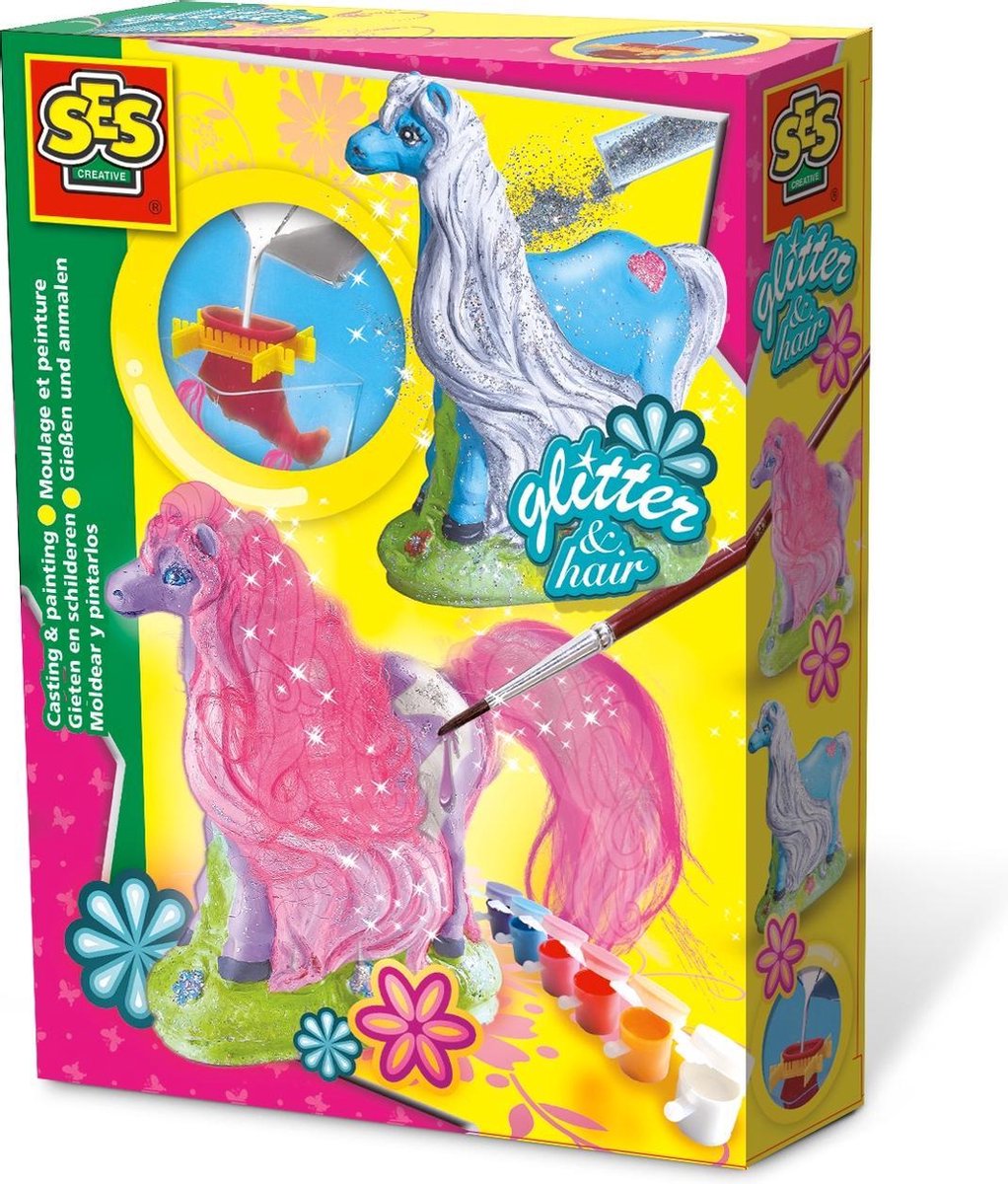 Gipsgiet set paard met echte manen. Schilder na het drogen het paard met de bijbehorende verf en glitters. Leeftijd vanaf 5 jaar.