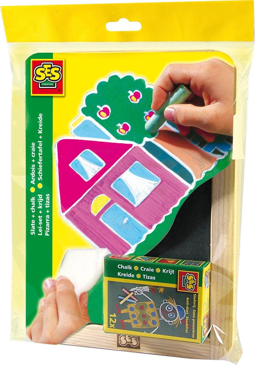 Ses leiset met krijtjes. Tekenen, uitwissen en weer opnieuw beginnen! Deze set bevat verschillende kleuren krijt die ook voor een schoolbord te gebruiken zijn.