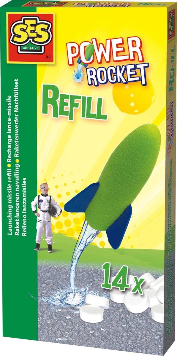 Unieke navulling: alleen te gebruiken in combinatie met de SES Power rocket (02246). Creer je eigen raketlancering! Doe een lanceertablet in het buisje en voeg wat water toe. Steek het buisje in de raket, zet de raket op veilige afstand en het aftellen kan beginnen. 3, 2, 1 Wauw! Je ziet de raket lanceren tot wel 5 meter hoog. Elke tablet kun je meerdere keren gebruiken.
