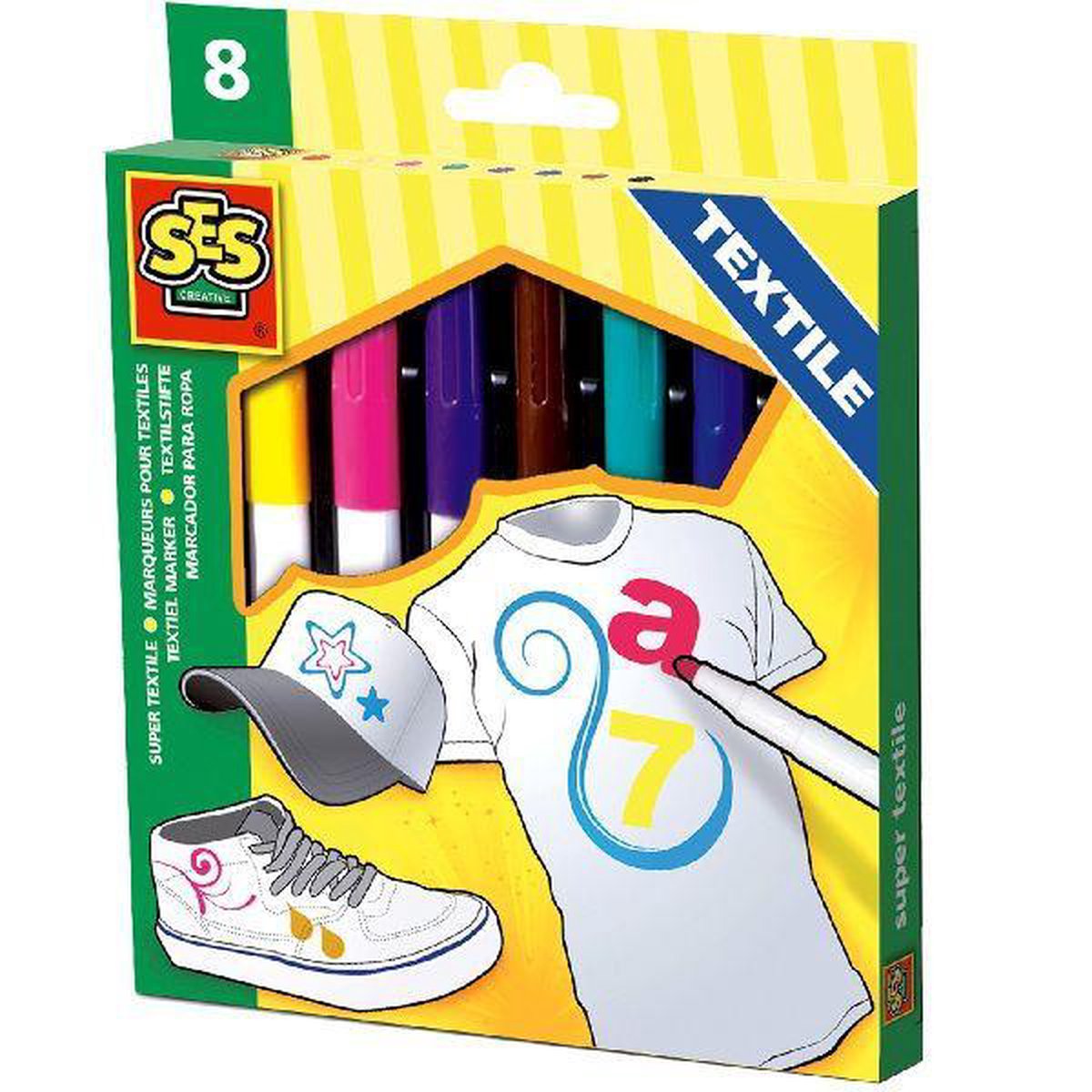 De textielstiften van SES geven prachtige kleuren. Met deze textielstiften verander je een saai wit t-shirt binnen de kortste keren in een prachtig kunstwerk. Eigenschappen: - Permanent op textiel; - Drukbestendige punt; - Langdurig houdbaar; - De schrijfwaren van SES geven de mooiste kleuren, vlekken niet en zijn makkelijk uitwasbaar.