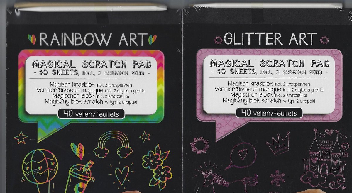 set 2 krasblok art 2x 40 bladen met 2 kraspennen hiermee ontwerp je je eigen magische kunst thema regenboog kleuren en glitter unicorn