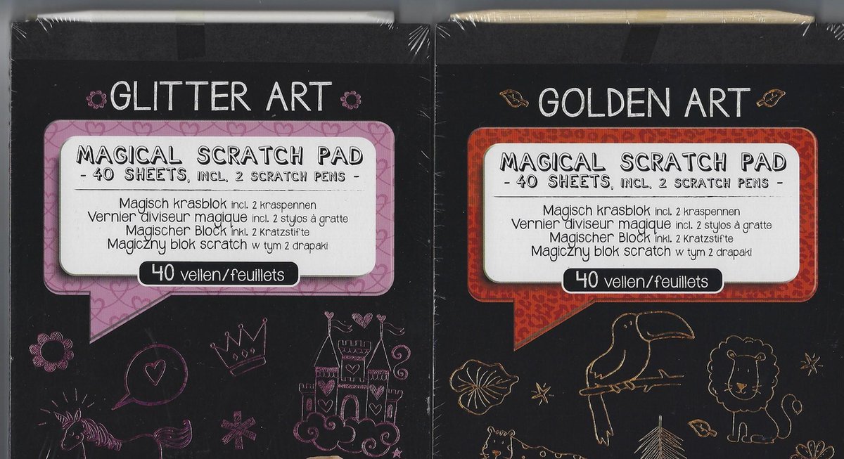 set 2 krasblokken incl kraspennen vanaf 3 jaar A5 formaat krasblokken thema golen art en unicorn met 2 kraspennen aan 2 kanten te gebruiken