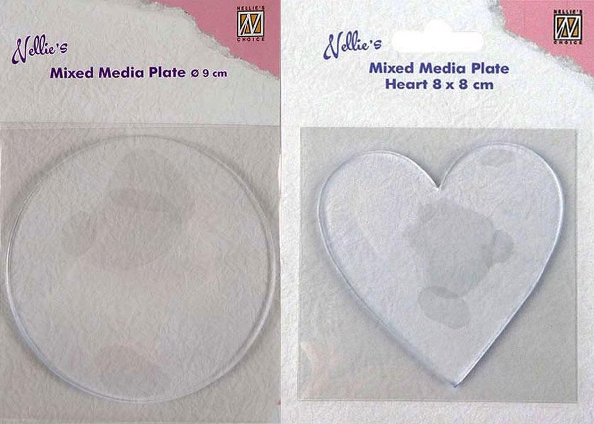 2 Mixed Media Plates Formaat: Hartje 80 x 80mm en 3mm dik en Rondje 90mm Merk: Nellie`s Choice
