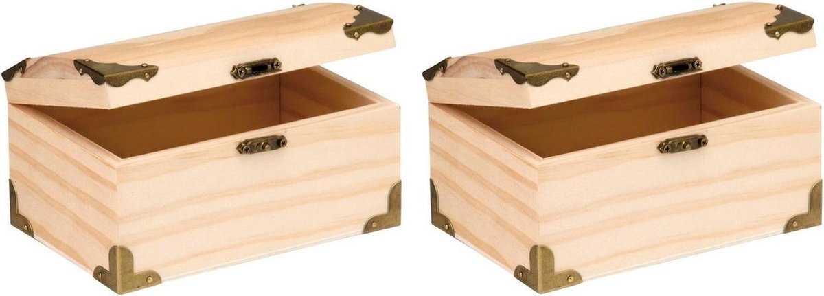 Set van 2x stuks houten kistjes met half ronde deksel, gemaakt van pijnboom hout. Het kistje is van onbewerkt hout, waardoor deze zeer geschikt is om te schilderen/versieren. Afmeting: ca. 18 x 12,5 x 10 cm. Materiaal: hout. Inhoud: ca. 2,3 liter. Hobby/knutselmateriaal - Houten kisten - Schatkisten/speelgoedkisten - Kistjes schilderen en versieren.