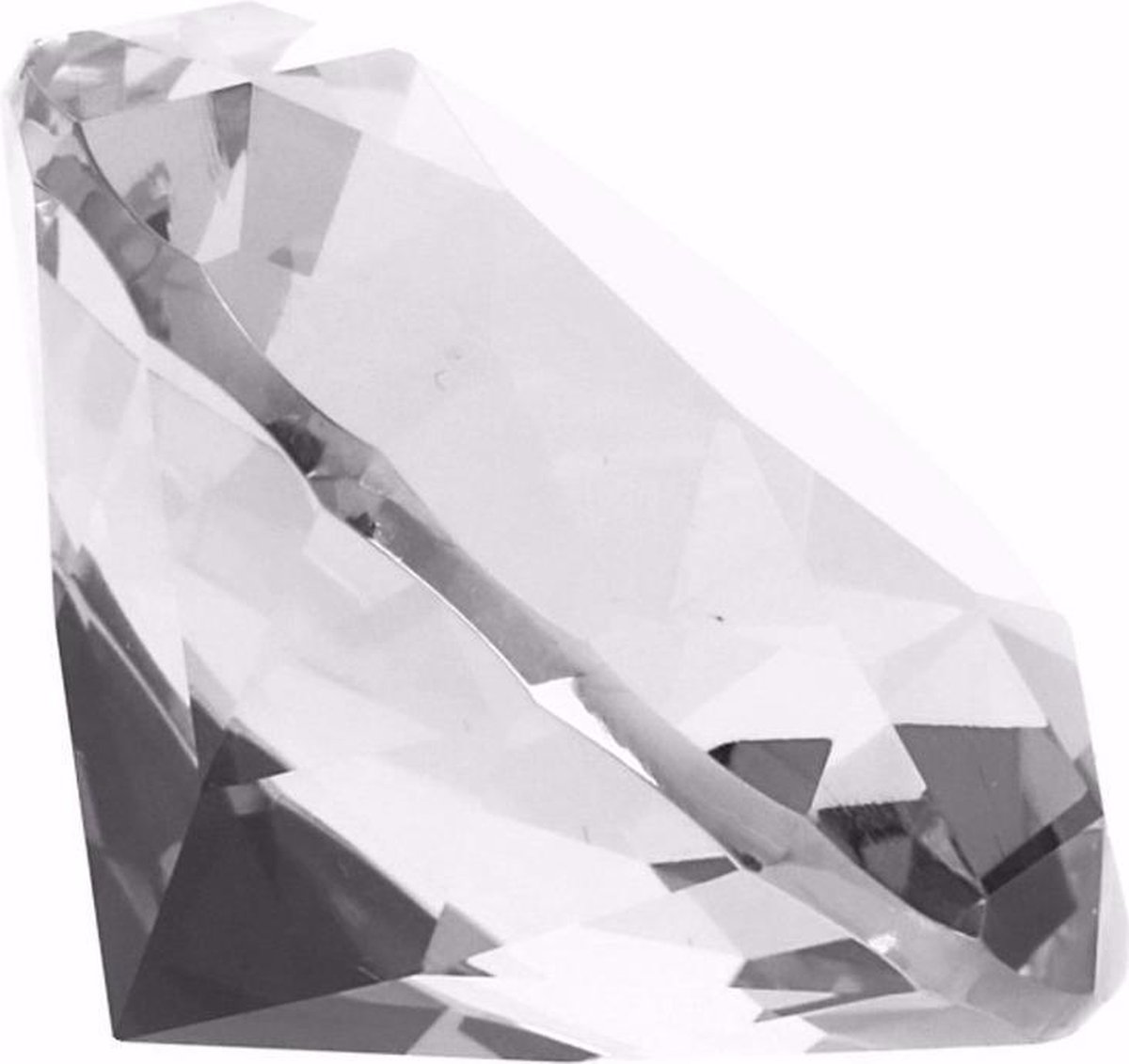 Set van 2x stuks transparante nep diamanten 6 cm van glas. Decoratieve, glazen diamanten zonder kleur ofwel transparant. Formaat diameter: ca. 6 cm, hoogte: ca. 6 cm. Materiaal: 100% glas. Decoratie, edelstenen piraten schat, of gebruik je fantasie.