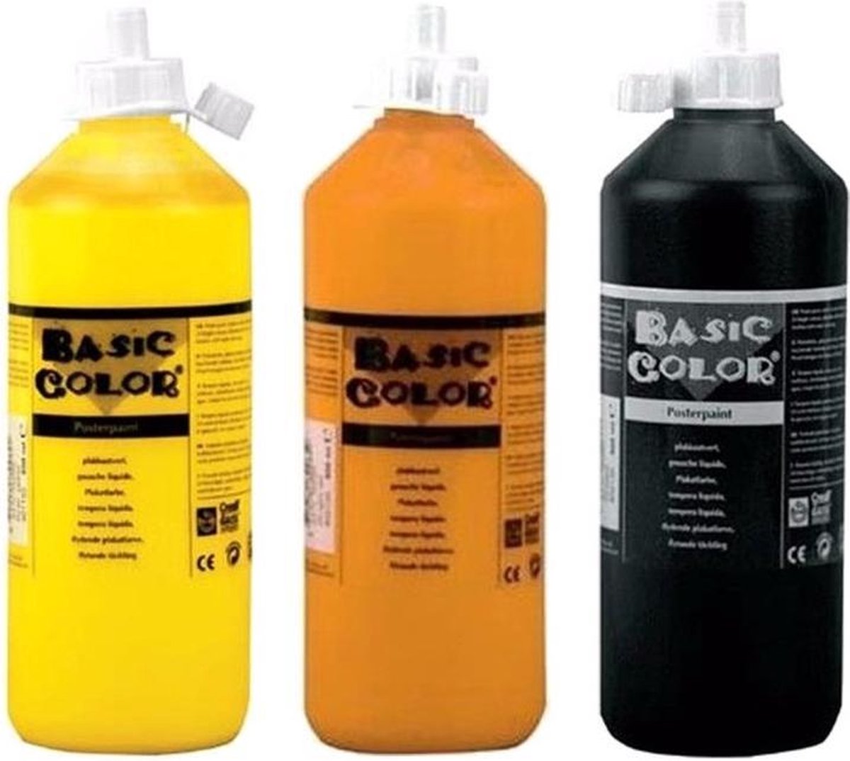 Set van 3x knijpflessen in de kleuren (zwart-oranje-geel) hobby knutselen kinder plakkatverf op waterbasis. Elke fles heeft een inhoud van 500 ml. Schilderen en verf artikelen materialen. De verf is gebruiksklaar en hecht goed op de meeste ondergronden. Bovendien kun je de verf mengen met andere kleuren plakkaatverf, zodat je keuze hebt uit nog meer kleuren. Wanneer de verf opgedroogd is heeft deze een matte kleur. Pak enkel nog de penselen en een canvas doek op en ga aan de slag. bestaande uit 1x Gele verf op waterbasis 500 ml, 1x Oranje verf op waterbasis 500 ml, 1x Zwarte verf op waterbasis 500 ml