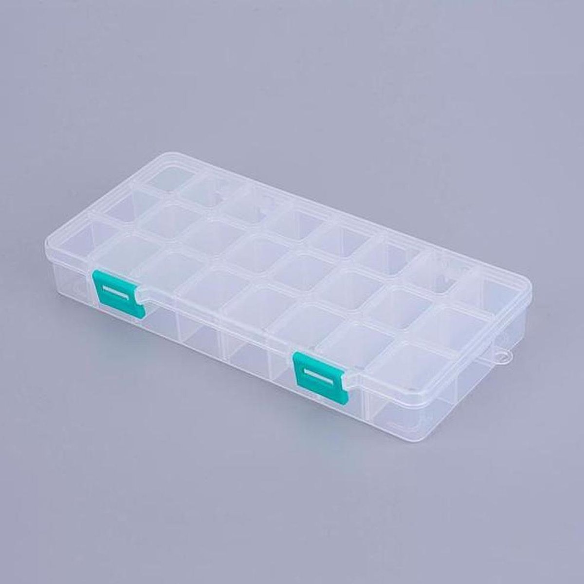 set van 4 sorteerdozen met 24 vakjes 21,8 x 11 x 3cm elk vakje: 3 x 2,5cm Elk vakje kan nog groter gemaakt worden door tussenstukjes eruit te schuiven.