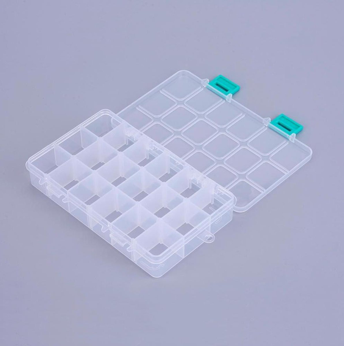set van 5 sorteerdozen met 18 vakjes 16,5 x 10,8 x 3cm elk vakje = 3 x 2,5cm Ideaal voor het sorteren van kralen. Elk vakje kan je gemakkelijk aanpassen en groter maken door de plaatjes er uit te schuiven.