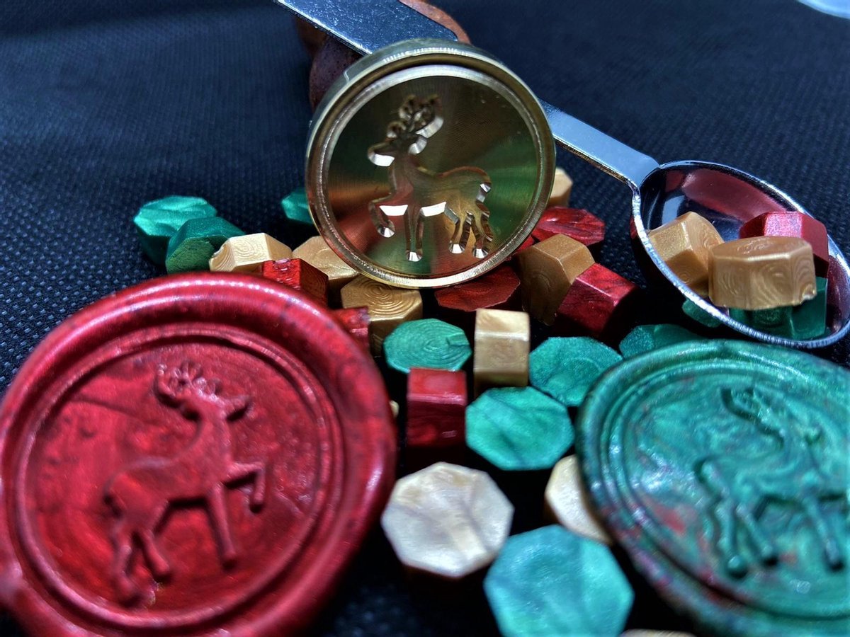 SET: Waxzegels / Lakzegels, smeltlepel & stempel Hert voor het maken van een lakstempel - Goud/Rood/Groen Kerst! - Knutselen - Knutselpakket - Kerstkaarten