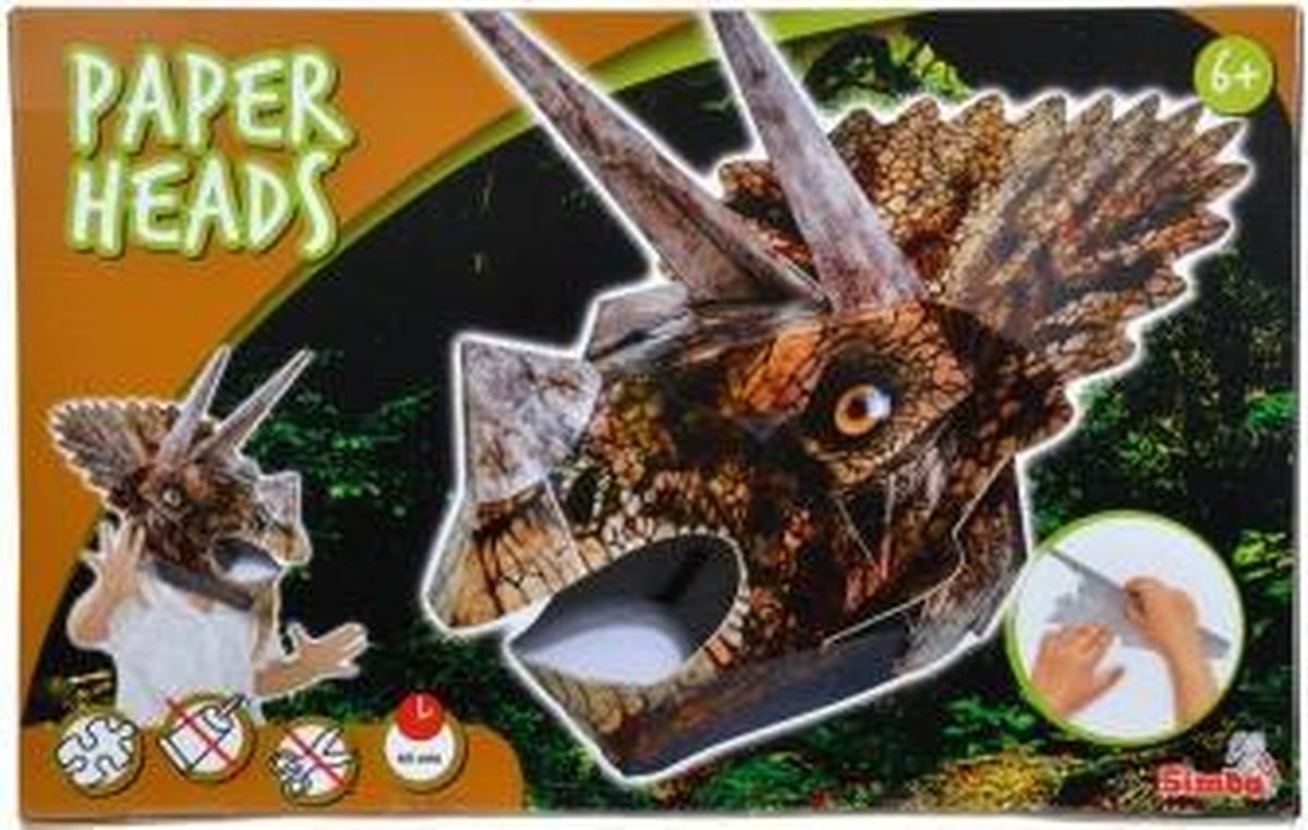 Triceratops was een grote dinosaurus die wel negen meter lang endrie meter hoog kon worden.Met ditmooie papieren masker verander je zelfin echte Triceratops. Het masker kun je zelf snel en eenvoudig vouwen. Je hebt er niet eens lijm voor nodig! Zet het masker op en laat mensen schrikken of geef het een mooi plekje op je kamer. Afmeting: 55 cm.