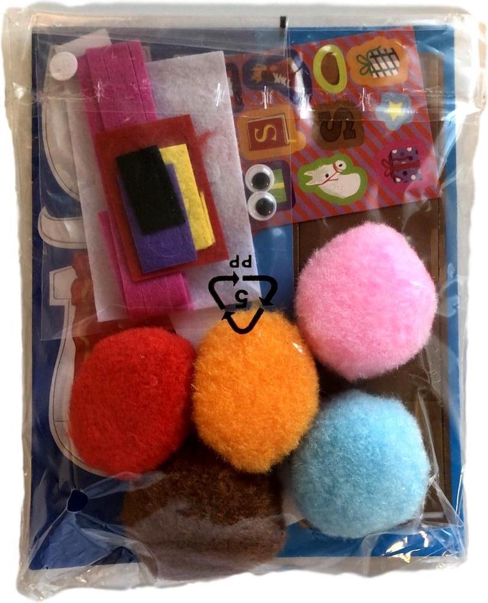 Knutselpakketje voor Sinterklaas Inhoud: Vilten onderdelen, 5 pompoms, beweegbare oogjes, dubbelzijdige tape, instructies, stickervel, onderdelen van karton