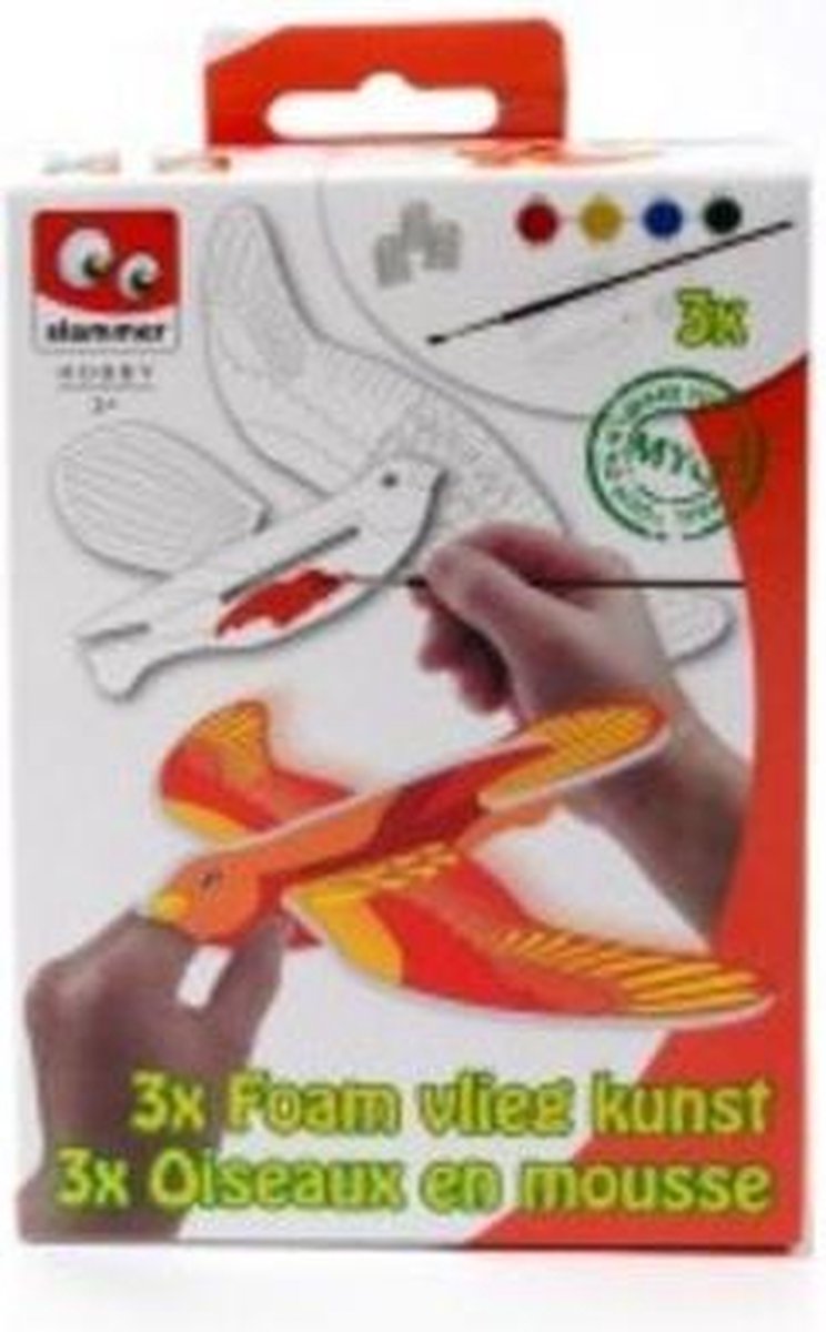 Beleef nu veel plezier met maken van foamvogels De set bestaat uit: - 3 x foam vogels - 4 kleuren verf - 1 x penseel Geschikt voor kinderen van 5 tot 8 jaar. Afmeting verpakking: 11,5 x 15 x 4 cm Afmeting vogel: ca. 25 x 15 cm De vogel kan na het knutselen en verven zelfs vliegen!